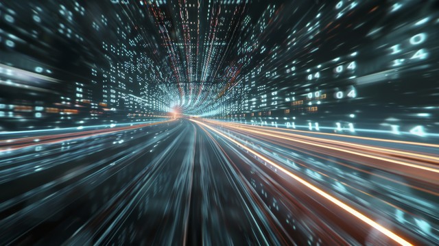 在运动模糊路径或轨道速度上具有二进制代码的高速和更快的数字矩阵技术信息概念。