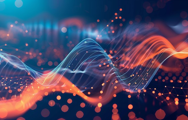 抽象彩色的粒子波,现代流线型数字技术背景
