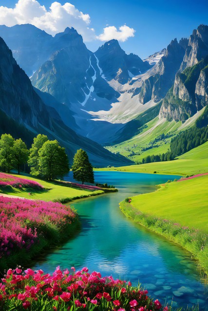 美丽风景,青山连绵,绿地无垠,花朵缤纷绽放,令人心醉的自然之景,大自然的杰作背景,神秘旅游游玩胜地