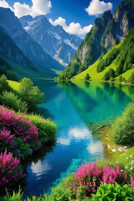 美丽风景,青山连绵,绿地无垠,花朵缤纷绽放,令人心醉的自然之景,大自然的杰作背景,神秘旅游游玩胜地