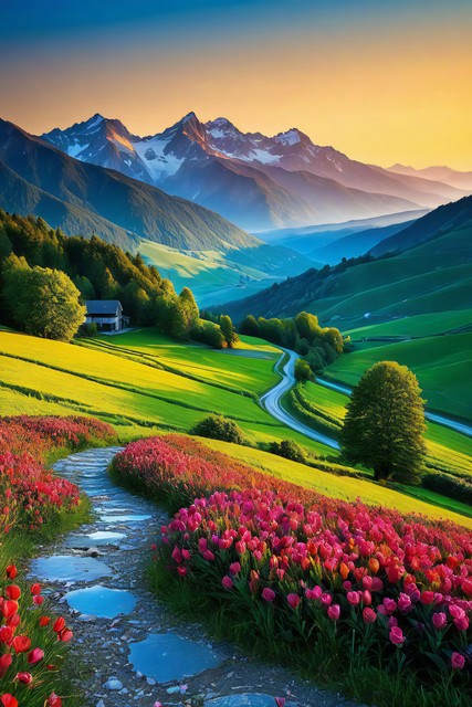 美丽风景,青山连绵,绿地无垠,花朵缤纷绽放,令人心醉的自然之景,大自然的杰作背景,神秘旅游游玩胜地