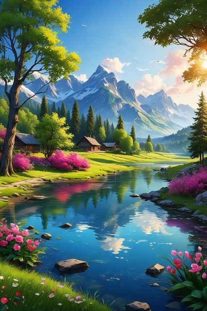 美丽风景,青山连绵,绿地无垠,花朵缤纷绽放,令人心醉的自然之景,大自然的杰作背景,神秘旅游游玩胜地