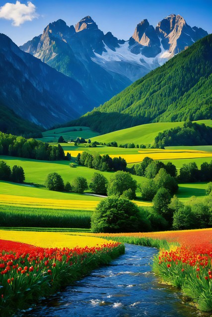 美丽风景,青山连绵,绿地无垠,花朵缤纷绽放,令人心醉的自然之景,大自然的杰作背景,神秘旅游游玩胜地