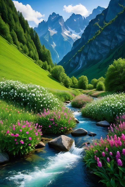 美丽风景,青山连绵,绿地无垠,花朵缤纷绽放,令人心醉的自然之景,大自然的杰作背景,神秘旅游游玩胜地