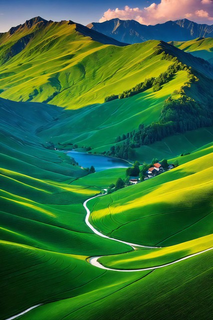 美丽风景,青山连绵,绿地无垠,花朵缤纷绽放,令人心醉的自然之景,大自然的杰作背景,神秘旅游游玩胜地