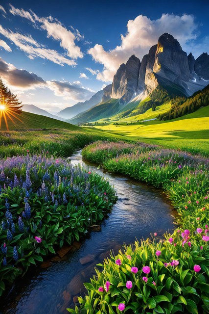 美丽风景,青山连绵,绿地无垠,花朵缤纷绽放,令人心醉的自然之景,大自然的杰作背景,神秘旅游游玩胜地