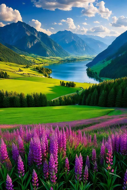 美丽风景,青山连绵,绿地无垠,花朵缤纷绽放,令人心醉的自然之景,大自然的杰作背景,神秘旅游游玩胜地