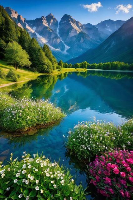 美丽风景,青山连绵,绿地无垠,花朵缤纷绽放,令人心醉的自然之景,大自然的杰作背景,神秘旅游游玩胜地