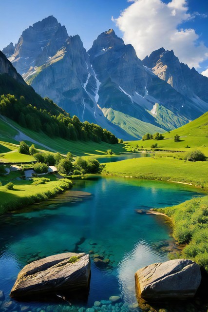 美丽风景,青山连绵,绿地无垠,花朵缤纷绽放,令人心醉的自然之景,大自然的杰作背景,神秘旅游游玩胜地