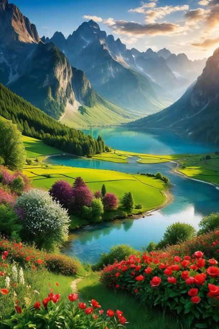 美丽风景,青山连绵,绿地无垠,花朵缤纷绽放,令人心醉的自然之景,大自然的杰作背景,神秘旅游游玩胜地