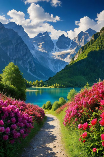 美丽风景,青山连绵,绿地无垠,花朵缤纷绽放,令人心醉的自然之景,大自然的杰作背景,神秘旅游游玩胜地