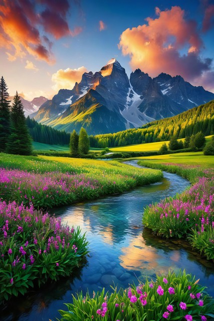 美丽风景,青山连绵,绿地无垠,花朵缤纷绽放,令人心醉的自然之景,大自然的杰作背景,神秘旅游游玩胜地