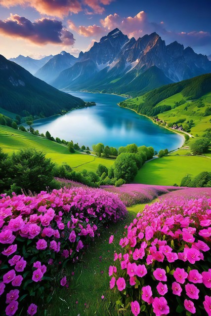 美丽风景,青山连绵,绿地无垠,花朵缤纷绽放,令人心醉的自然之景,大自然的杰作背景,神秘旅游游玩胜地