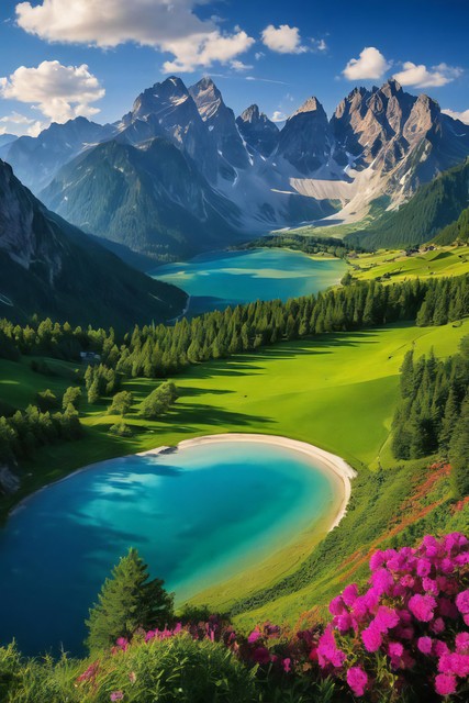 美丽风景,青山连绵,绿地无垠,花朵缤纷绽放,令人心醉的自然之景,大自然的杰作背景,神秘旅游游玩胜地