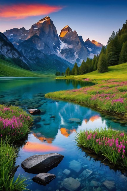 美丽风景,青山连绵,绿地无垠,花朵缤纷绽放,令人心醉的自然之景,大自然的杰作背景,神秘旅游游玩胜地