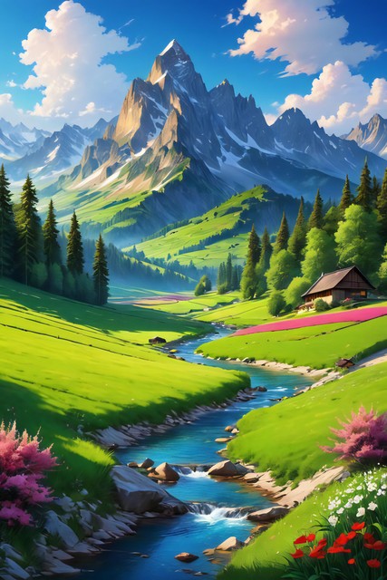 美丽风景,青山连绵,绿地无垠,花朵缤纷绽放,令人心醉的自然之景,大自然的杰作背景,神秘旅游游玩胜地