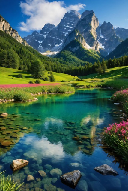 美丽风景,青山连绵,绿地无垠,花朵缤纷绽放,令人心醉的自然之景,大自然的杰作背景,神秘旅游游玩胜地