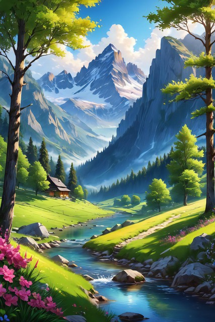 美丽风景,青山连绵,绿地无垠,花朵缤纷绽放,令人心醉的自然之景,大自然的杰作背景,神秘旅游游玩胜地