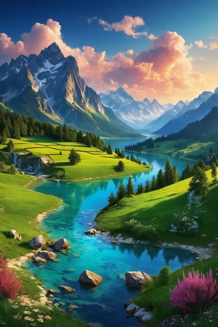 美丽风景,青山连绵,绿地无垠,花朵缤纷绽放,令人心醉的自然之景,大自然的杰作背景,神秘旅游游玩胜地