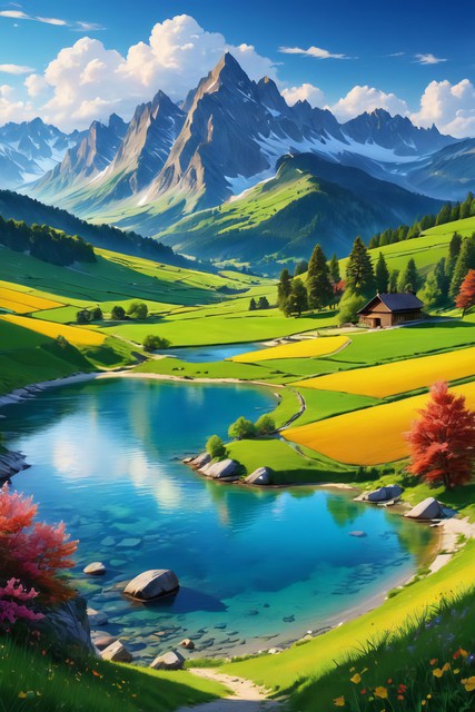 美丽风景,青山连绵,绿地无垠,花朵缤纷绽放,令人心醉的自然之景,大自然的杰作背景,神秘旅游游玩胜地