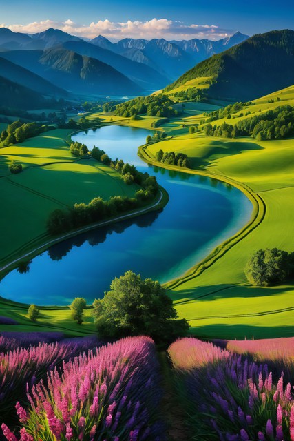 美丽风景,青山连绵,绿地无垠,花朵缤纷绽放,令人心醉的自然之景,大自然的杰作背景,神秘旅游游玩胜地
