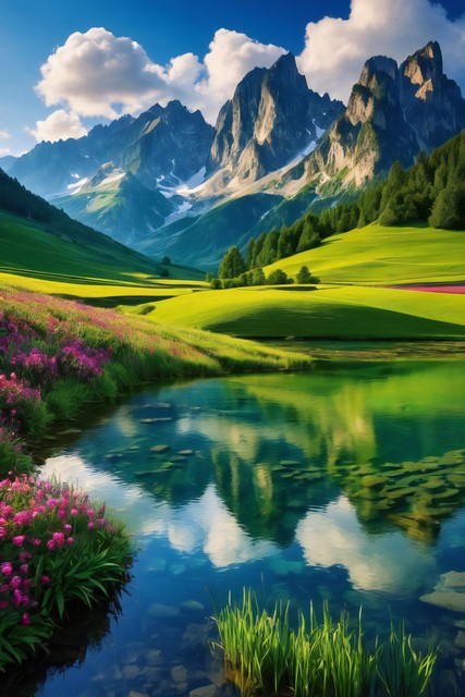 美丽风景,青山连绵,绿地无垠,花朵缤纷绽放,令人心醉的自然之景,大自然的杰作背景,神秘旅游游玩胜地