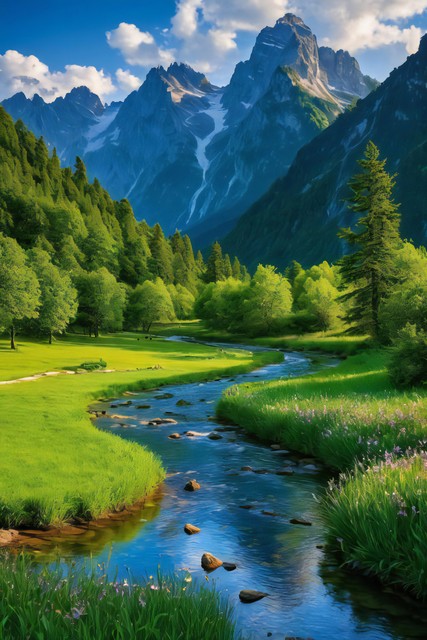 美丽风景,青山连绵,绿地无垠,花朵缤纷绽放,令人心醉的自然之景,大自然的杰作背景,神秘旅游游玩胜地
