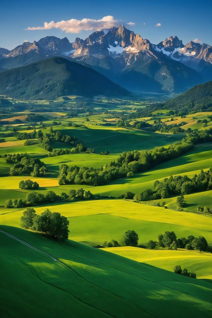 美丽风景,青山连绵,绿地无垠,花朵缤纷绽放,令人心醉的自然之景,大自然的杰作背景,神秘旅游游玩胜地