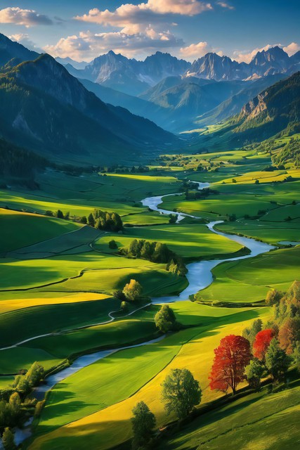 美丽风景,青山连绵,绿地无垠,花朵缤纷绽放,令人心醉的自然之景,大自然的杰作背景,神秘旅游游玩胜地