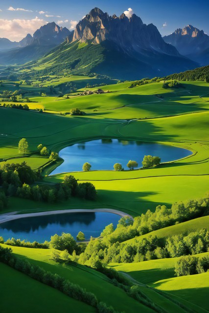 美丽风景,青山连绵,绿地无垠,花朵缤纷绽放,令人心醉的自然之景,大自然的杰作背景,神秘旅游游玩胜地