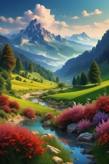 美丽风景,青山连绵,绿地无垠,花朵缤纷绽放,令人心醉的自然之景,大自然的杰作背景,神秘旅游游玩胜地