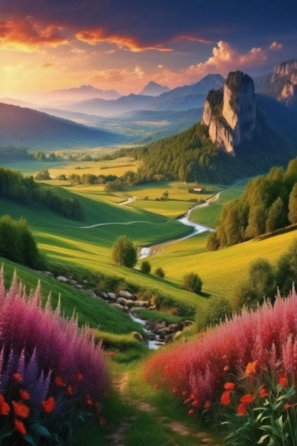 美丽风景,青山连绵,绿地无垠,花朵缤纷绽放,令人心醉的自然之景,大自然的杰作背景,神秘旅游游玩胜地