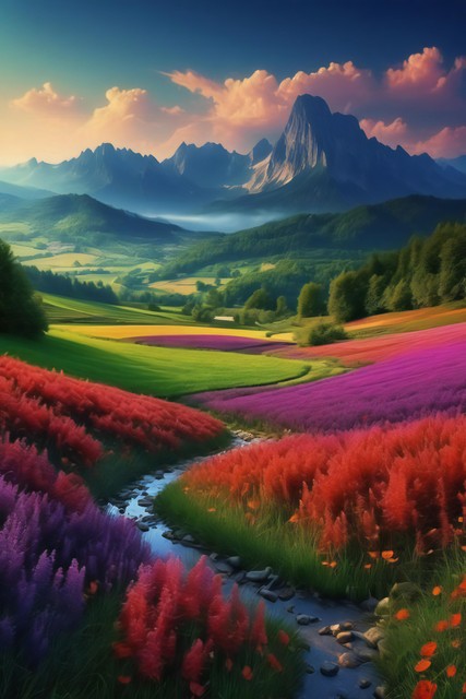 美丽风景,青山连绵,绿地无垠,花朵缤纷绽放,令人心醉的自然之景,大自然的杰作背景,神秘旅游游玩胜地