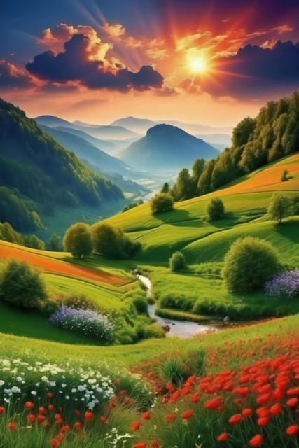 美丽风景,青山连绵,绿地无垠,花朵缤纷绽放,令人心醉的自然之景,大自然的杰作背景,神秘旅游游玩胜地