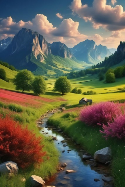 美丽风景,青山连绵,绿地无垠,花朵缤纷绽放,令人心醉的自然之景,大自然的杰作背景,神秘旅游游玩胜地