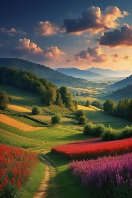 美丽风景,青山连绵,绿地无垠,花朵缤纷绽放,令人心醉的自然之景,大自然的杰作背景,神秘旅游游玩胜地