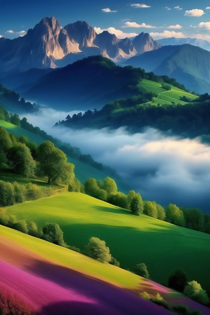 美丽风景,青山连绵,绿地无垠,花朵缤纷绽放,令人心醉的自然之景,大自然的杰作背景,神秘旅游游玩胜地