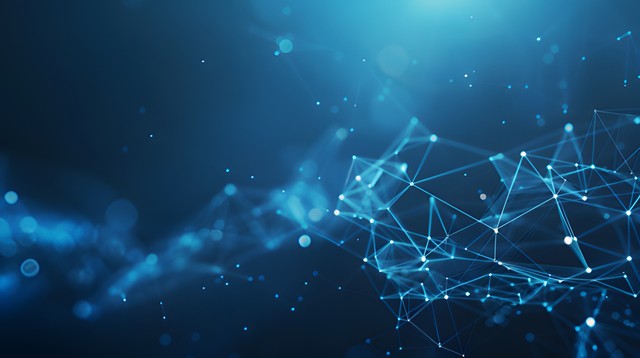 抽象低聚背景,深蓝色背景上的数字连接和点,大数据技术概念。网络空间中全球网络连接系统的矢量插图,网页