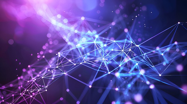 抽象低聚背景,深蓝色背景上的数字连接和点,大数据技术概念。网络空间中全球网络连接系统的矢量插图,网页