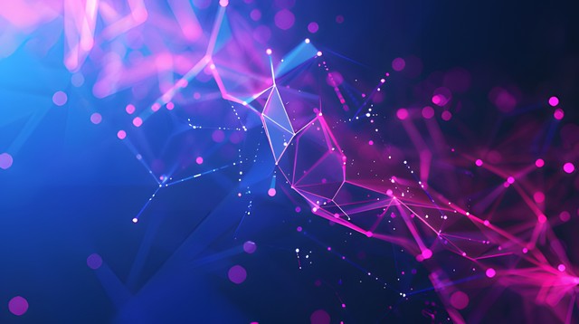 抽象低聚背景,深蓝色背景上的数字连接和点,大数据技术概念。网络空间中全球网络连接系统的矢量插图,网页