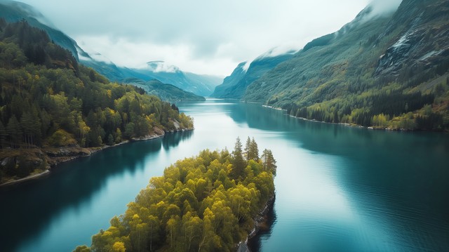 摄影,自然风景,挪威峡湾的景色,高角度拍摄