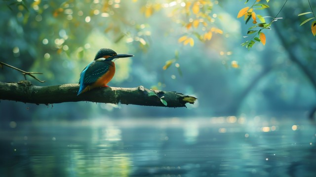 美丽的自然景观与普通翠鸟 Alcedoatthis。 普通翠鸟在树枝上的野生动物射击。自然栖息地的普