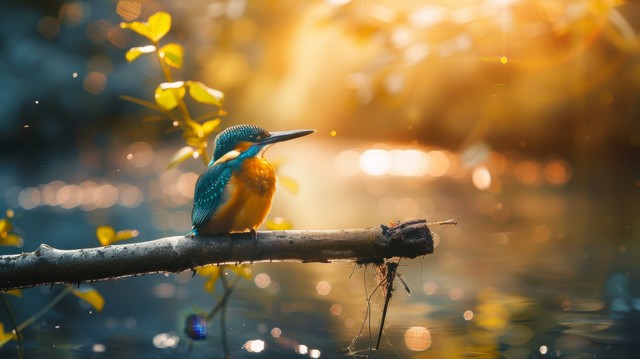 美丽的自然景观与普通翠鸟 Alcedoatthis。 普通翠鸟在树枝上的野生动物射击。自然栖息地的普