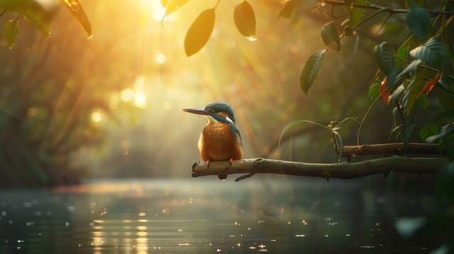 美丽的自然景观与普通翠鸟 Alcedoatthis。 普通翠鸟在树枝上的野生动物射击。自然栖息地的普