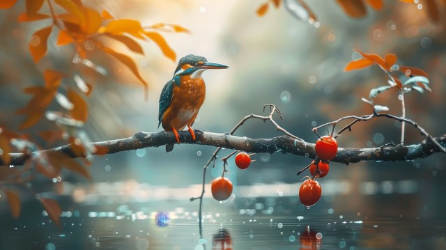 美丽的自然景观与普通翠鸟 Alcedoatthis。 普通翠鸟在树枝上的野生动物射击。自然栖息地的普