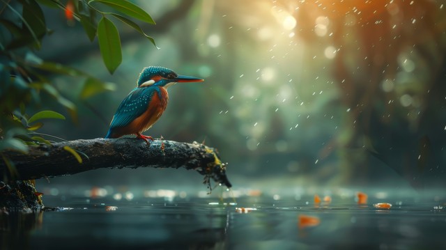 美丽的自然景观与普通翠鸟 Alcedoatthis。 普通翠鸟在树枝上的野生动物射击。自然栖息地的普