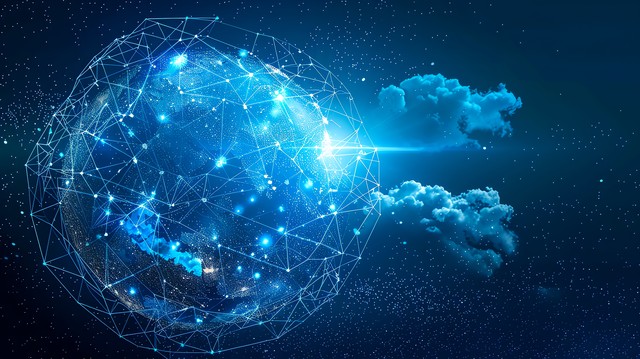 蓝色背景地球图标,科技全球网络概念。