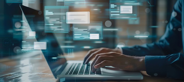 商人在办公室用笔记本电脑