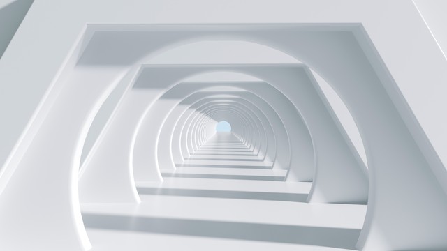 白色明亮穿梭隧道科技抽象现代建筑