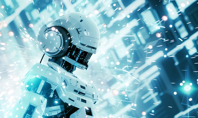科幻,机器人插图。高科技数字技术概念,抽象的未来主义设计。